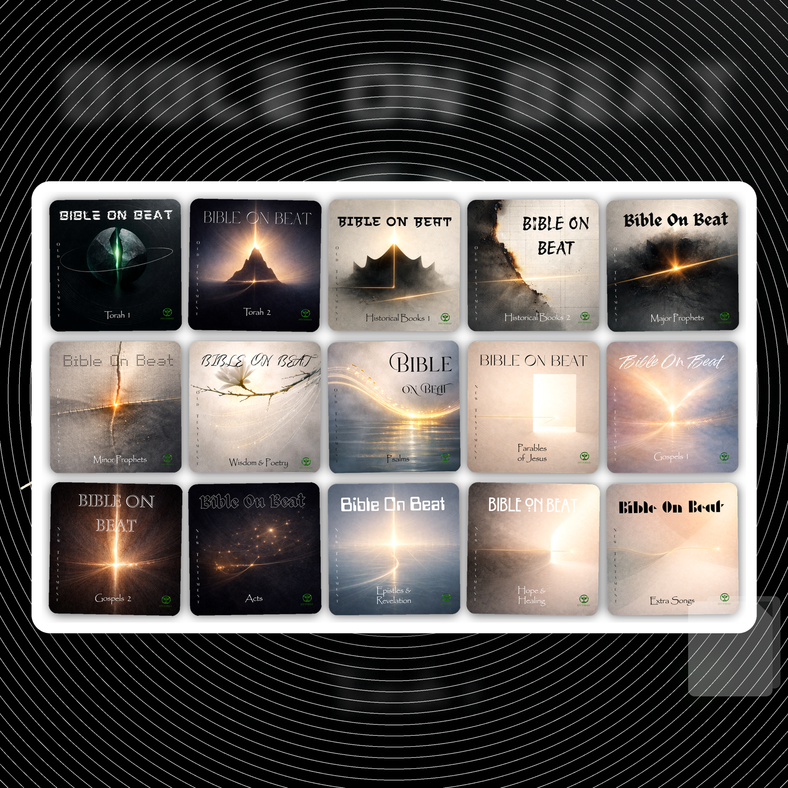 Bible On Beat is a 15-album journey through the entire Bible, told through music. Each album is built like a playlist with roughly 25–35 songs, so the listener isn’t just hearing one theme once. They’re hearing the patterns of God’s Word repeat, deepen, and connect.